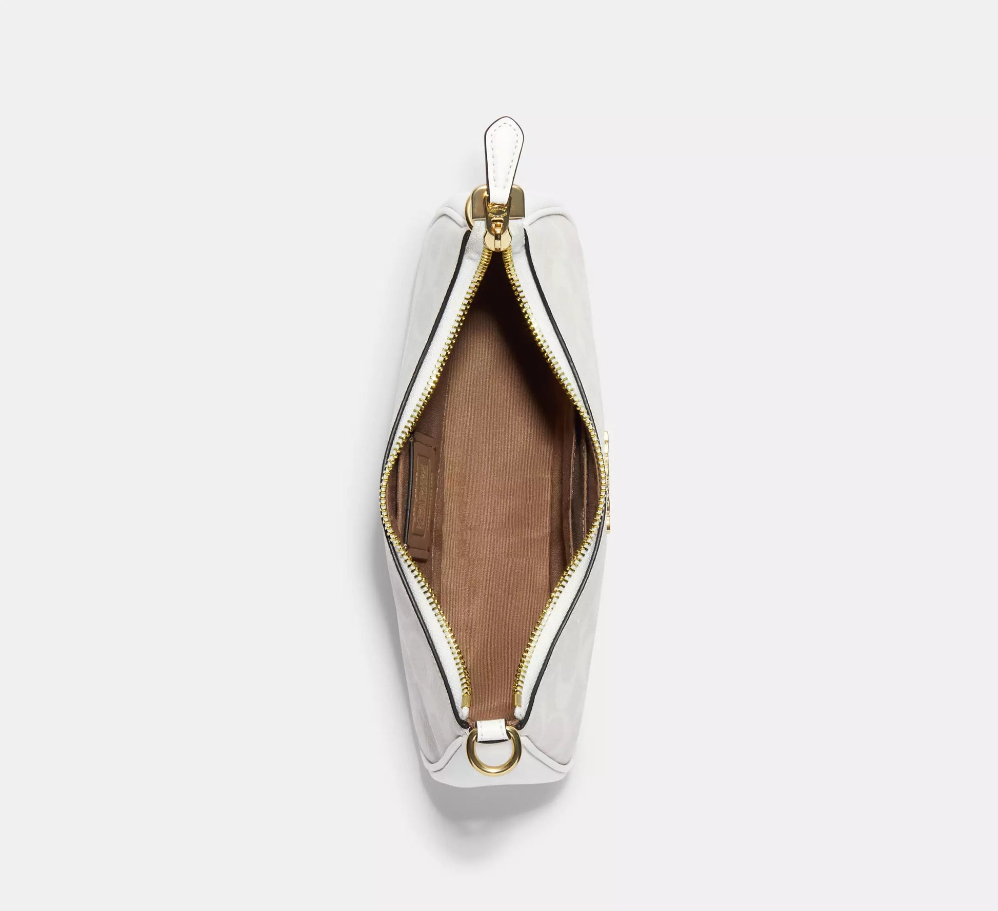 Crafted from signature coated canvas with a soft fabric lining, this bag includes a detachable 8.5” handle, a 22.75” shoulder‑to‑crossbody strap, an interior multifunction pocket, and a secure zip‑top closure.